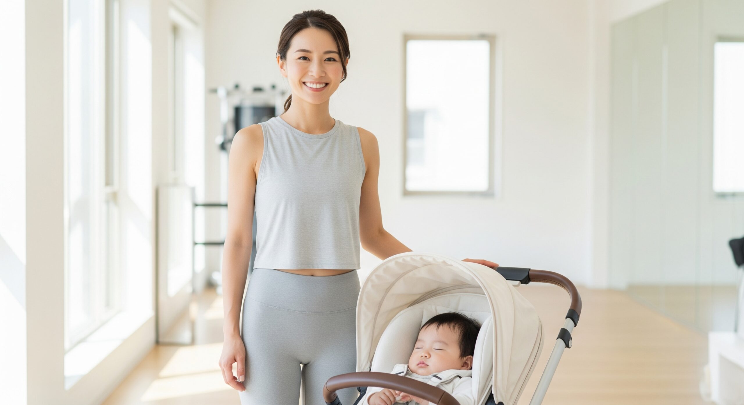 出産直後の身体は、想像以上にダメージを受けています。まずは心身の回復を最優先し、無理に体型を戻そうとせず休養に集中しましょう。この時期は、骨盤底筋の軽い収縮運動や、呼吸法など、負担のない範囲で身体を整える準備がおすすめです。ジム通いはまだ早いですが、情報収集を始めておくのも◎です。