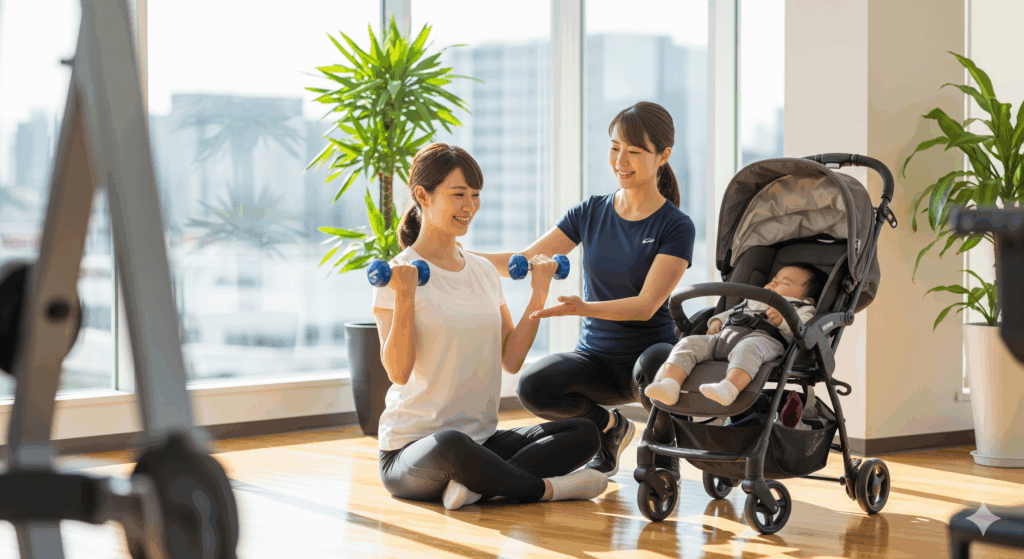 外出が難しい時期には、オンラインパーソナルトレーニングや出張型のサービスを活用するのも有効です。自宅で赤ちゃんのそばにいながら専門的な指導を受けられるため、安心してトレーニングを続けられます。生活リズムに合わせて柔軟に取り入れることで、ジム通いと同様の効果を実感できるでしょう。