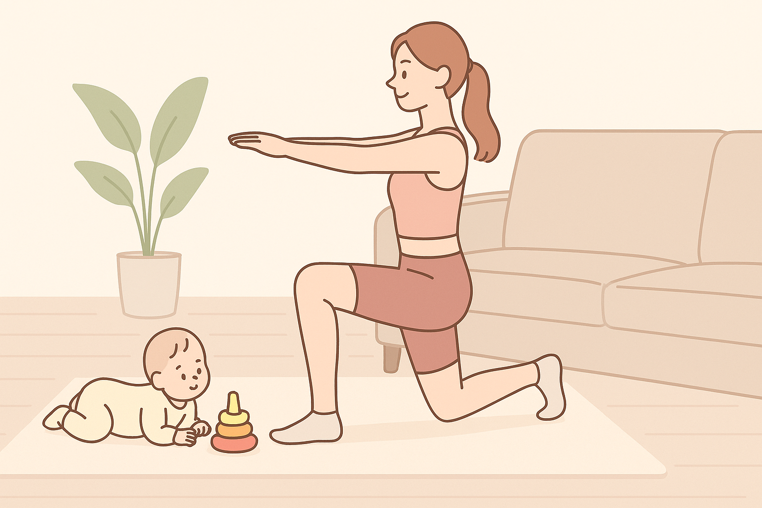 産後0〜2ヶ月は休養と回復を最優先する「静養期」、3〜10ヶ月は体力と筋力を少しずつ取り戻す「回復期」、11ヶ月以降は積極的に体を動かしコンディションを整える「再生期」と段階的に分けられます。