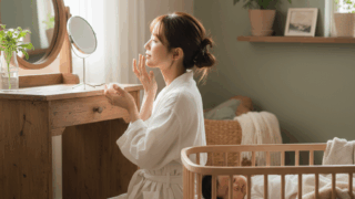 出産を終えたママの多くが悩むのが「産後の肌荒れ」です。 妊娠中に分泌されていた女性ホルモン(エストロゲン)は、出産後に急激に減少し、皮膚のバリア機能や水分保持力が低下します。さらに、夜間授乳による睡眠不足や育児ストレス、食生活の乱れも加わり...